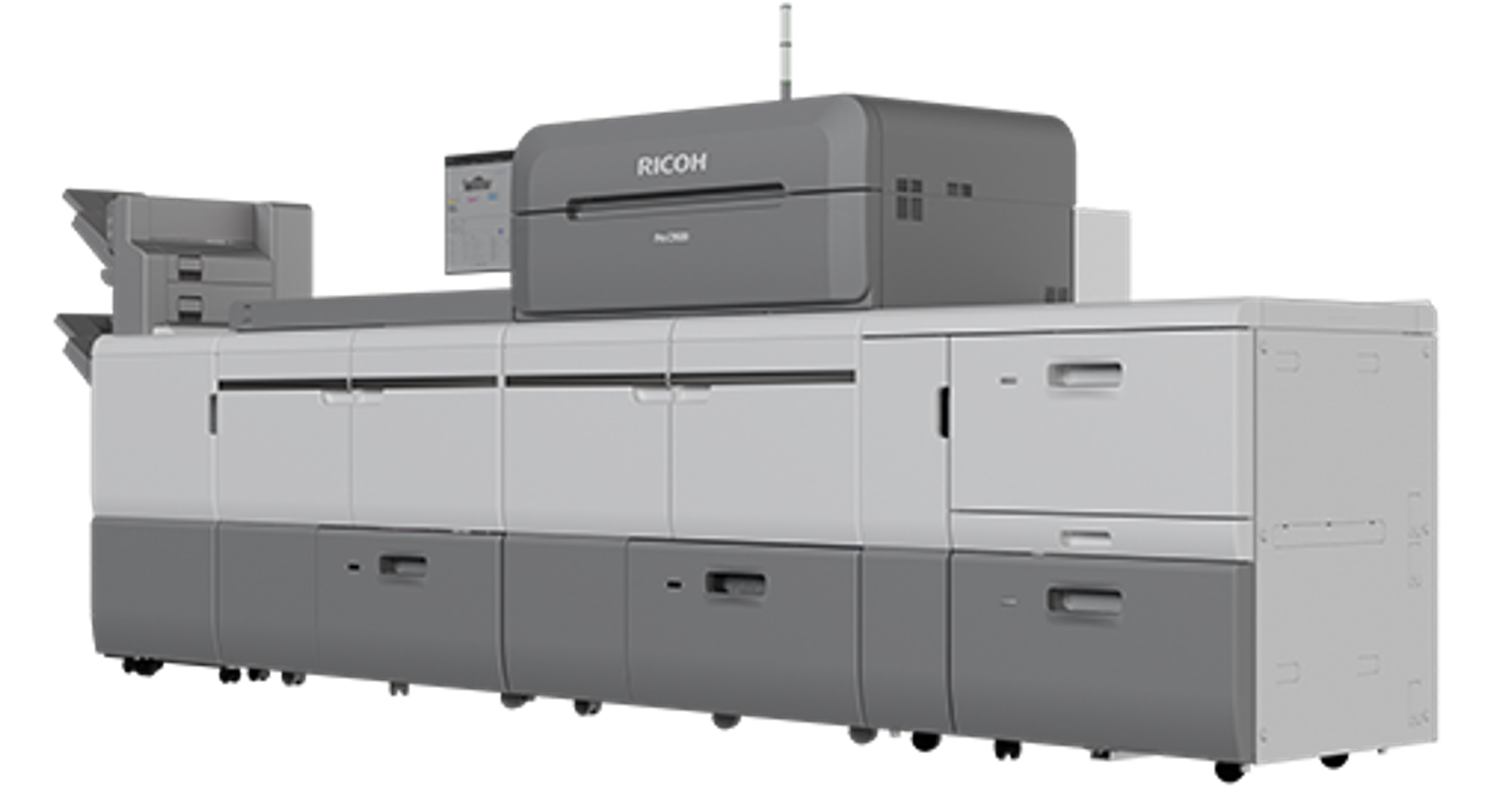 La serie Pro™ V20000 es la última incorporación de Ricoh a su línea de alimentación continua, que está creciendo rápidamente y que abarca una amplia gama de aplicaciones tanto en blanco y negro como en color. La serie V20000 consta de dos dispositivos especializados para la impresión en blanco y negro, y de una máquina básica en color. A pesar de que todas las máquinas son compactas, pueden imprimir hasta 150 metros por minuto, lo que supera holgadamente a dispositivos mucho mayores y más complejos.